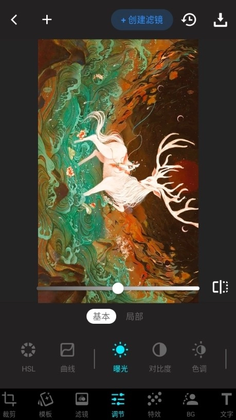 4、可以调节图片的基本信息,比如曝光、对比度、色调等等,还能进行文字编辑。