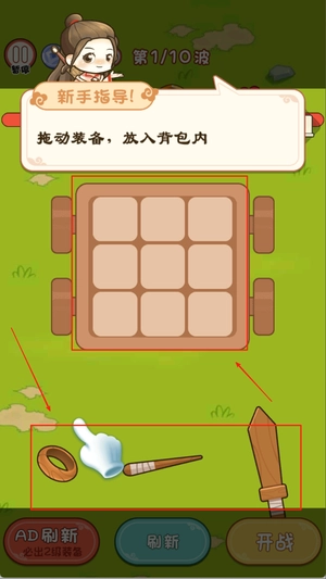 1. 在屏幕上点击以选定背包位置,把武器拖至合适的格子内,战斗回合时系统会自动触发相应的攻击效果。