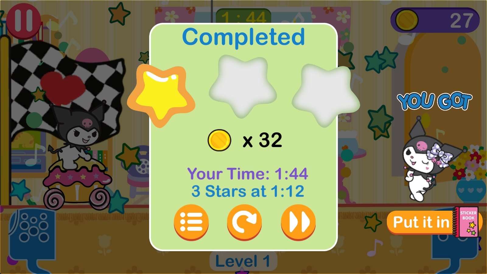 在由凯蒂猫及其伙伴举办的趣味赛车竞速比赛里取得胜利。这场游戏的赛道别具一格,卧室、浴室以及厨房都充当了赛道。