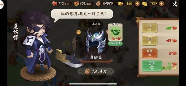 然后我们还可以通过选择消耗民心,将出售的装备涨价,涨价后,一般收获的经验与铜币奖励都会有,20%-30%的提升,当然民心也是有所上限的,玩家要判断涨价后的价值足够高,那就可以随心所欲的涨价啦!