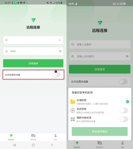 1. 打开受控手机的【允许远程本设备】功能,并开通以下3项权限。