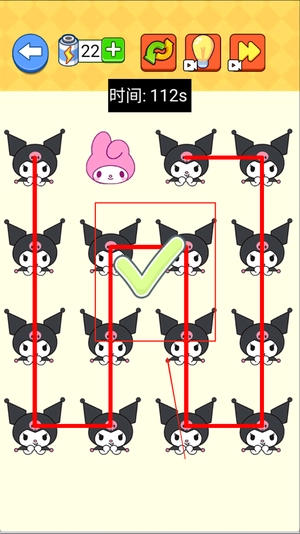 2、通过手指滑动屏幕在元素之间画线,确保所有相同图标都在同一线条之上,并且不能出现交叉,否则任务失败。