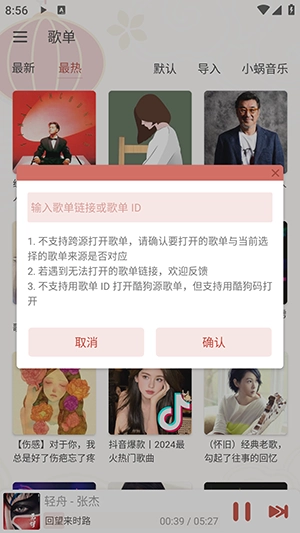 2、点击导入,按上面的要求复制歌单链接即可。
