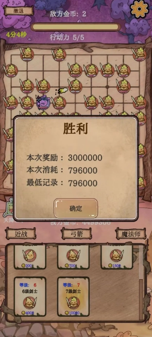 2、在对局中,我们需要消耗对应的金币去落下史莱姆棋子。