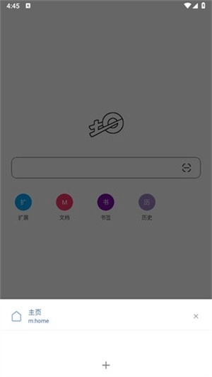 1. 启动土狗浏览器,于首页开展搜索操作,随后访问扩展页面、文档页面、书签页面以及历史页面。