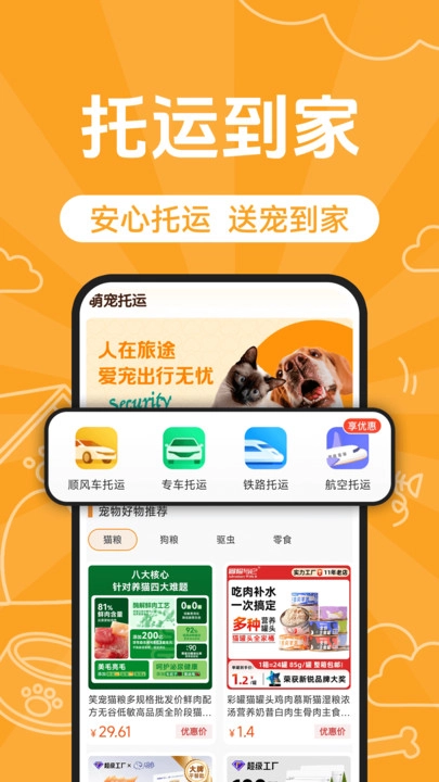4、无论你是搬家、出差还是度假,“宠物托运顺风车”都能帮助你解决如何带着爱宠出行的难题。