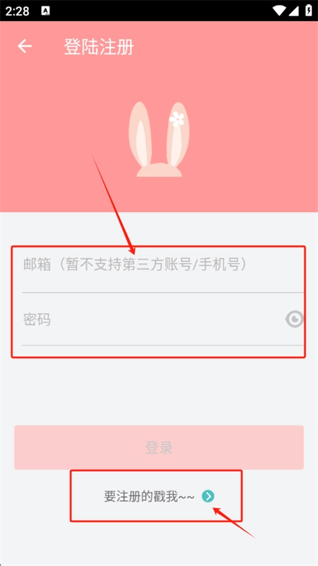 3、输入邮箱和密码可以快速登录,需要注册点击下方;