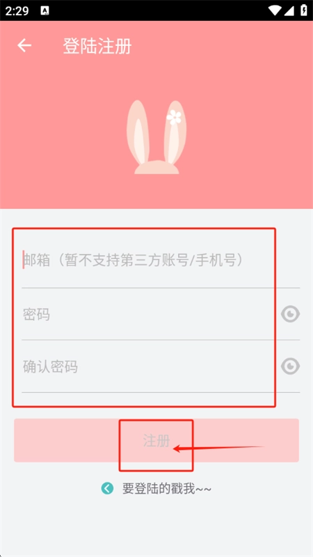 4、最后输入邮箱,设置好密码,点击注册即可。