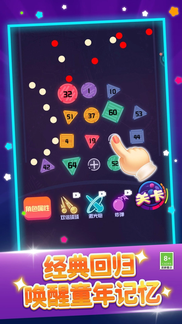 2、小球数量少的时候,稳扎稳打,先清关键方块;数量多就火力全开,覆盖弹射。