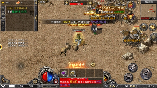 游戏开场就直接赠送VIP特权、刀刀必出暴击效果、屠龙刀以及元宝礼包等超多丰厚道具,助力你在游戏里迅速踏上征程。