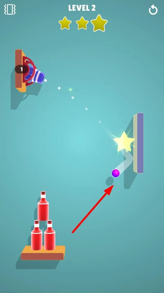 2、物体相互作用:利用炮弹与木板、其他物体的碰撞反弹,规划最佳路径,以最少炮弹粉碎瓶子。