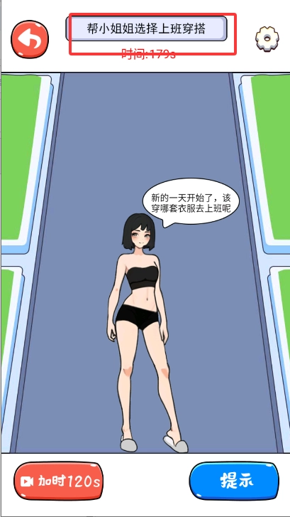 3、进入游戏后,为小姐姐上班组选择一套穿搭。