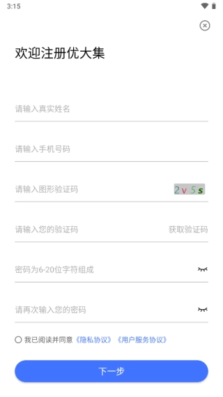 2、如果还没有账号,可以点击注册账号,输入注册信息后,点击下一步;