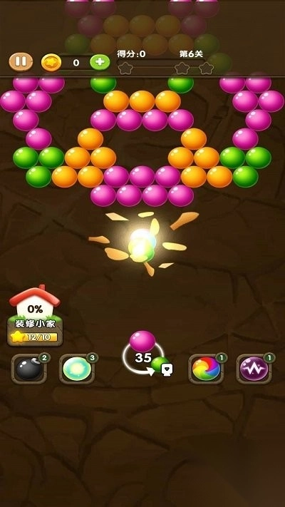 2、玩家只需发射与场上泡泡颜色相同的泡泡,让它们相互连接,当同色相连的泡泡达到特定数量时,便可实现消除。