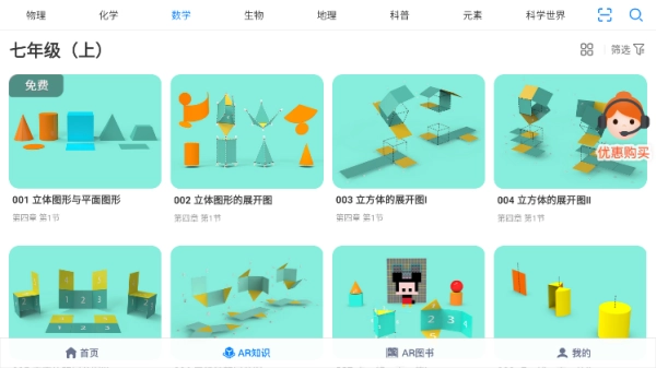 生动科学AR,这是一款依托AR技术精心打造的知识学习平台软件。它为用户呈现初、高中阶段数学、物理、化学、地理、生物、元素以及科普这七个板块的关键知识点。与单调乏味的平面知识教学不同,生动科学借助AR技术,让课堂充满活力与趣味。每个知识点都涵盖3D原理演示、语音讲解、操作互动、考试评测等丰富多样的立体内容,把枯燥的知识变得生动鲜活,将抽象的原理变得具体形象。它还能把远古恐龙、航天等内容逼真地呈现在用户眼前,以生动形象的方式强化学生的记忆力,助力激发学生的探索求知欲望。