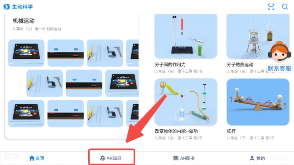 1. 打开生动科学AR,点击屏幕下方,进入“AR知识”板块。