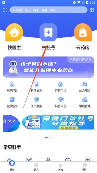1. 轻点首页的“去挂号”按钮。