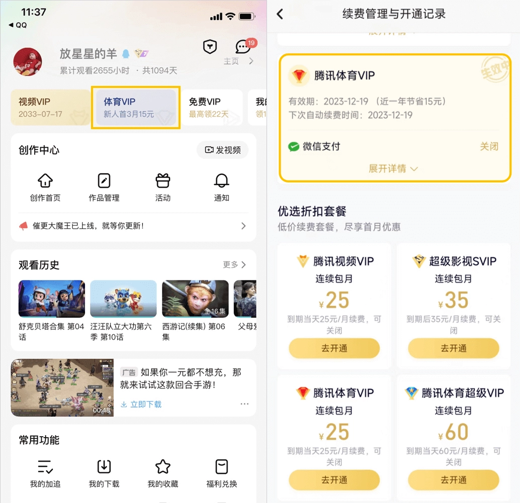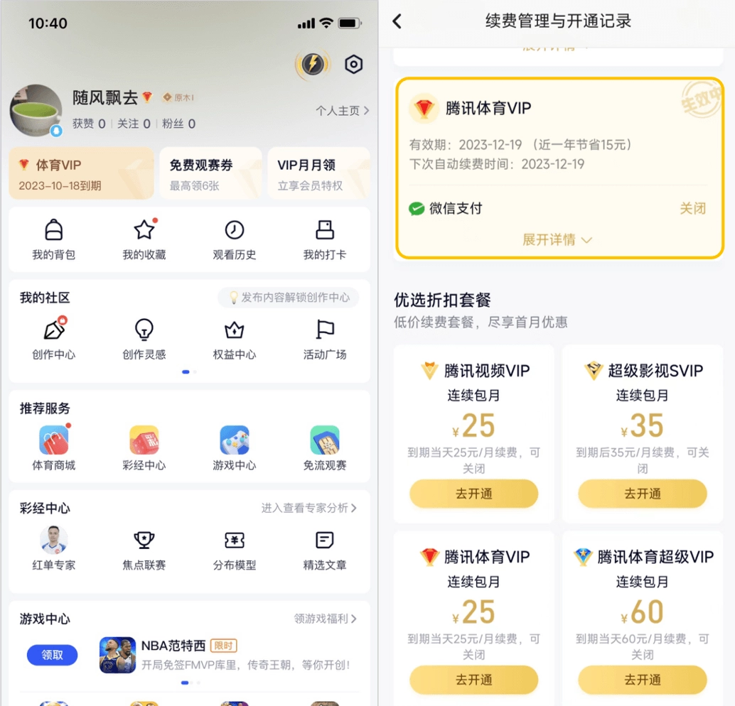 因QQ和微信账号不互通,您需要先确认一下您的腾讯体育VIP是开在QQ账号下还是微信账号下。