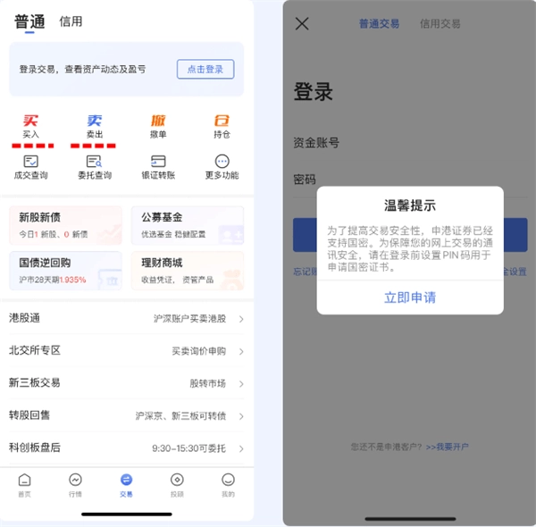 路径1:首页底部【交易】-输入账号密码