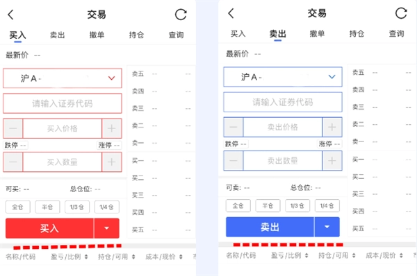 输入股票代码、委托价格、委托数量,点击【买入】/【卖出】,即可下单操作