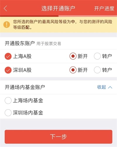 点开“股票账户”勾选所需开通的账户,