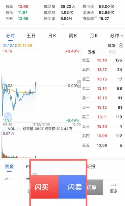 路径2:个股界面底部-点击【闪买】/【闪卖】