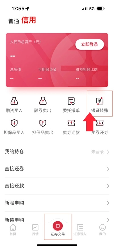 提示:普通账户和信用账户银证转账在不同的页面哦~