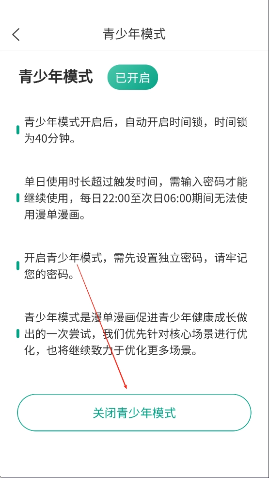 选择关闭青少年模式