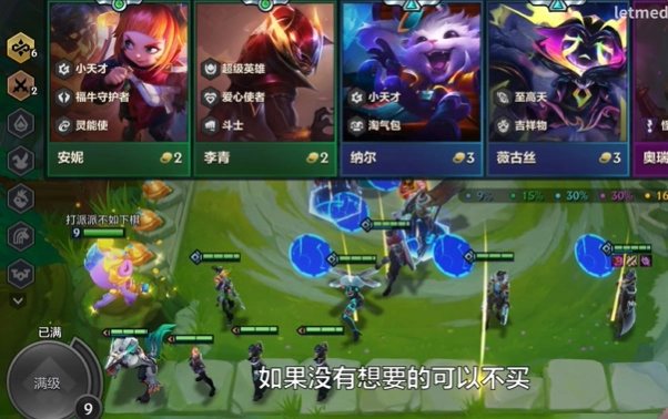 7、通过购买棋子进行布阵,同时合理提升等级上场更多棋子,尝试击败对手夺取胜利。