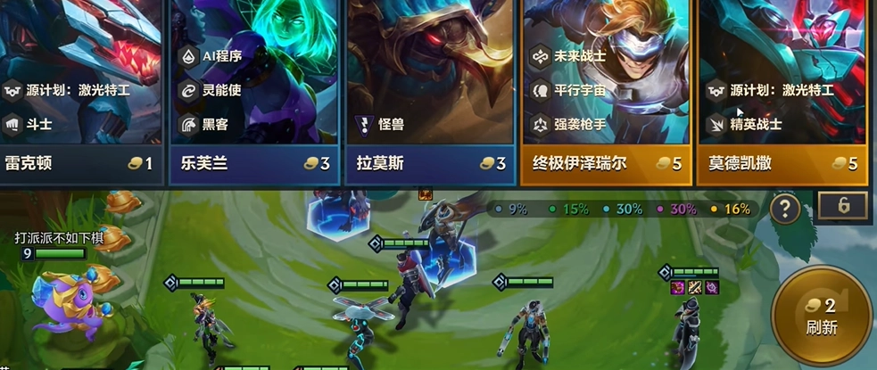 2、抢完棋子以后,玩家会有三个回合的备战环节,不会和真人玩家对抗,刷新棋子积攒资源。