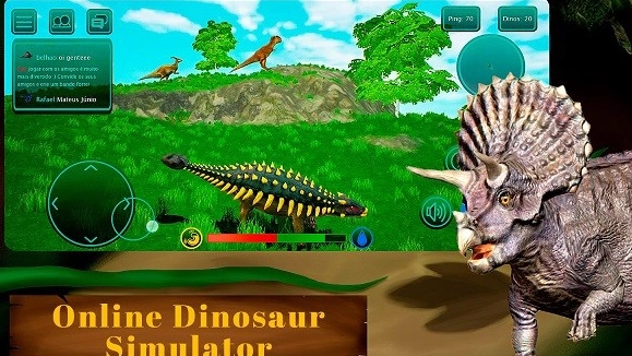 4、在冒险过程中采用第三人称视角表现,通过虚拟摇杆操作恐龙移动,玩家可以通过右上角的小地图以辨别位置;