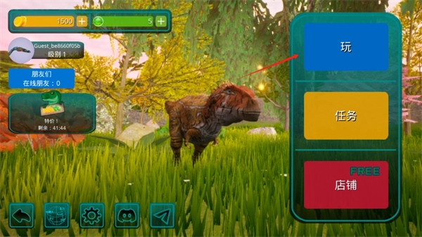 3、玩家在初次进入游戏的时候需要选择想要操作的恐龙类型,同时可以对恐龙的外观进行自由设置;