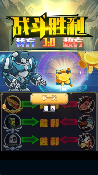 3、玩家可以调整机甲的出战顺序,在战斗中可以获得更多优势,击败敌人就能领取金币奖励。