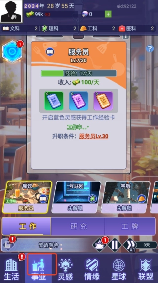 1、进入游戏后,你将体验到一个独特的模拟世界,在其中扮演服务员的角色,以此积累生活经验、收获成长经历。