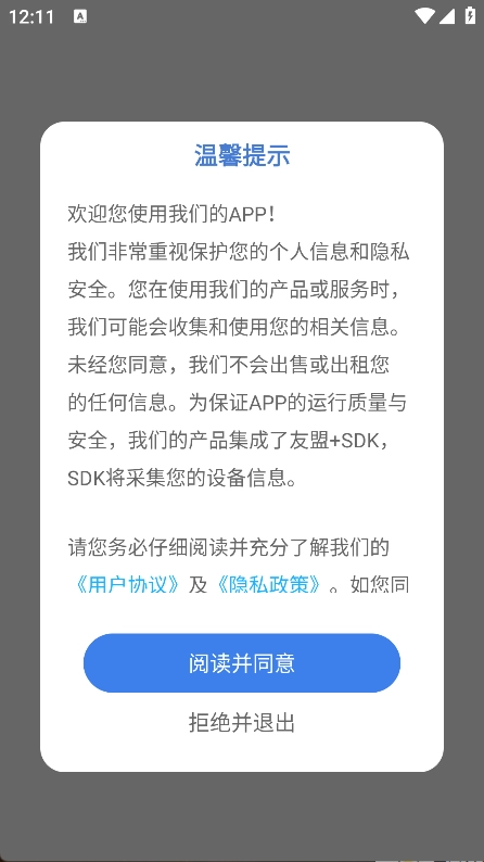 1. 并安装,点击阅读并同意,即可进入主页面;