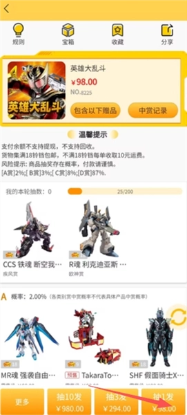 2、平台中奖概率透明,限定款、稀有款出现概率高,提升拆盒乐趣。