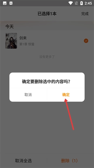 3、在管理模式下,选中目标浏览记录,点击底部的“删除”按钮,唤起删除确认弹窗。