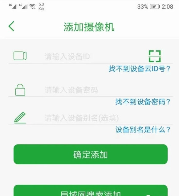 右上角的方框可通过直接扫描二维码来添加设备,也能借助局域网搜索功能完成添加操作。搜索成功后直接添加即可,随后系统会提示格式化内存卡,由于这一操作通常在首次安装时就已完成,因此后续不会再出现格式化内存卡的提示。成功添加设备后,将显示如下画面: