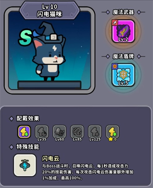 技能「闪电云」:在与Boss对战时,召唤出的闪电云每秒能造成相当于自身20%攻击力的伤害。并且,每次攻击都会让闪电云的伤害提升1%,该效果最多可叠加至100%。