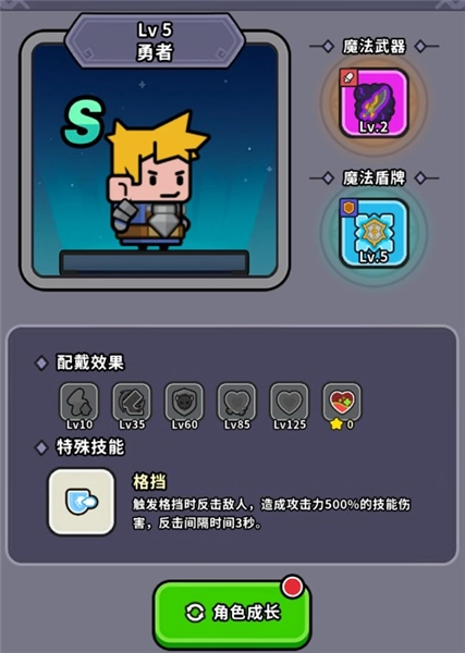 技能「格挡」:成功格挡后,每3秒进行一次反击,造成500%攻击的巨额伤害。