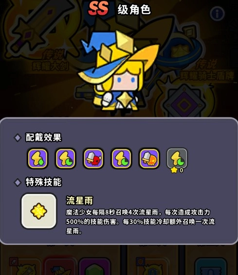 技能:每8秒召唤4波流星雨,每波造成500%攻击伤害;技能冷却属性每提升至30%,可额外增加一次召唤次数。