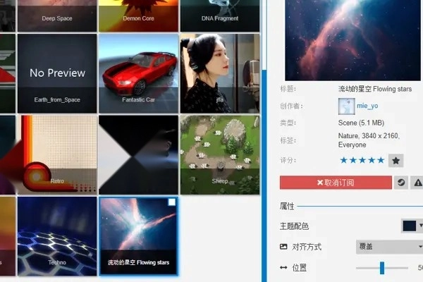 支持视频、GIF 和交互式 2D/3D 场景作为壁纸。