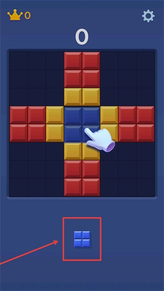 1、拖拽【蓝色方块】至【网格】的恰当位置,以便为填满整行或整列来消除方块做好准备,进而逐步累积分数。