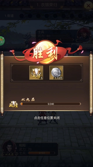 6、成功击败所有敌人即可获胜,并获得政绩和银币。