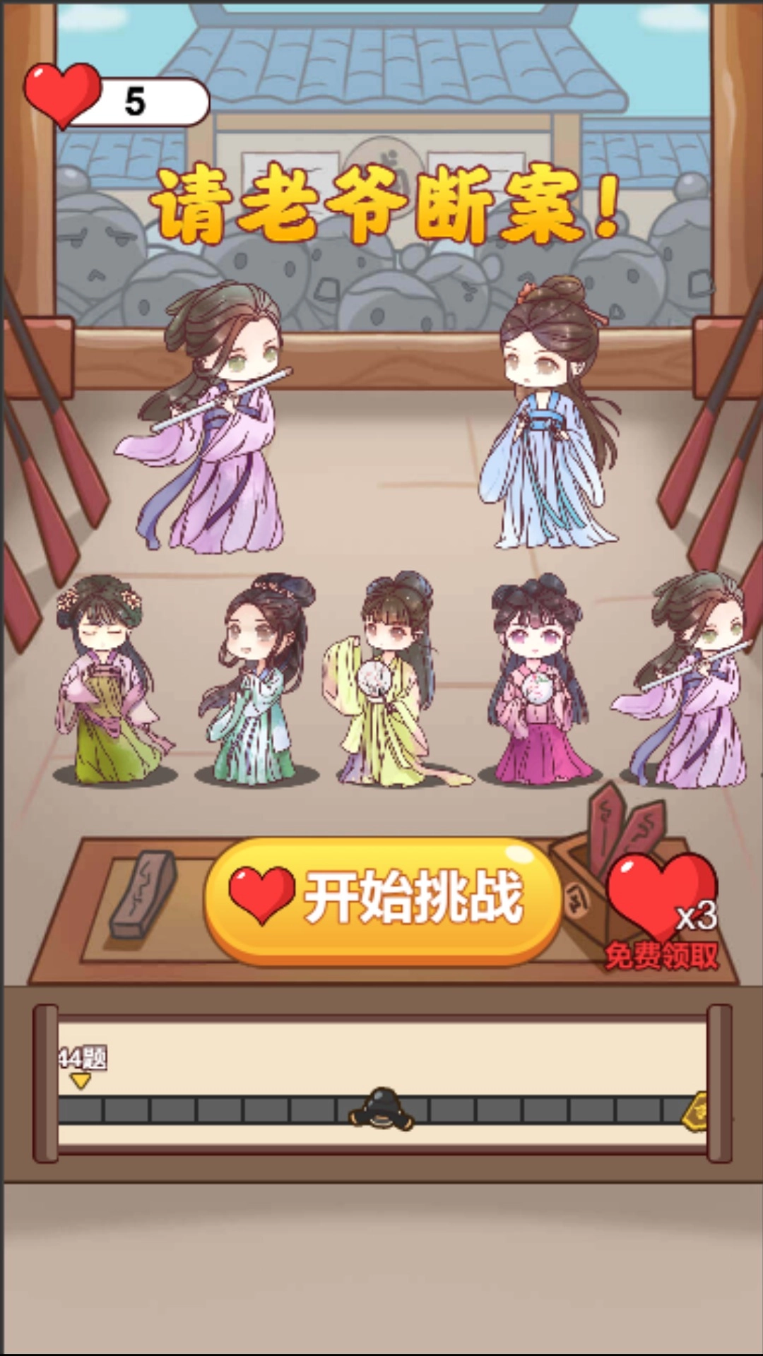 《请老爷断案》是一款玩法多样的答题游戏。玩家将穿越回古代,开启全新的答题征程。每个场景里都设有错综复杂的成语题目,玩家需凭借智慧找出正确的成语,以此持续扩充自身知识储备。游戏中,玩家可以挑战更多复杂的任务与关卡,不断体验新颖的答题模式,熟悉各类答题方法,在闯关的进程中收获更多荣誉。