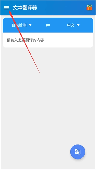 1. 开启文本翻译器后,轻点页面左上角的图标。