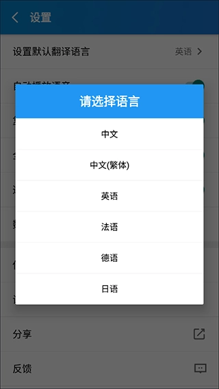4、随后即可选择语言进行修改默认翻译语言。