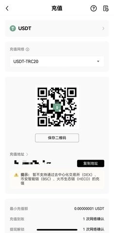 如果该币种网络需要填写标签(Tag/Memo),系统会有相应提醒。确认后,即可查看并复制该币种的充币地址与标签。