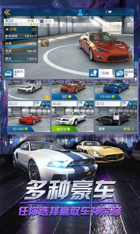 4、赛车丰富,多种不同类型的世界顶级赛车由你选择