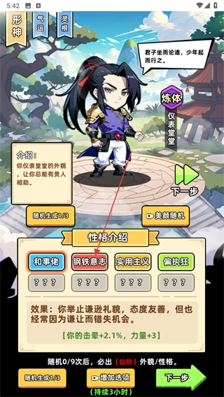 1、进入小白修炼计划后,可以选择角色的性格,红色的性格是最好的可以直接选择。